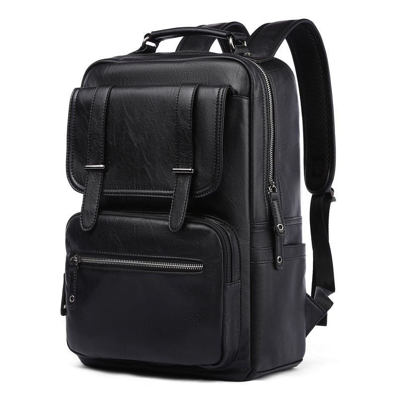 Ergonomic laptop backpack with air-cushion carrying system, designed for students and urban commuters. Features waterproof PU leather and dedicated 15.6-inch laptop compartment for daily durability. Offers full customization including logo, color, and size with OEM/ODM support. MOQ 1 piece | Free sample available | Production lead time 10–15 days.